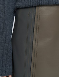 The Cezanne Overlay Nappa Leather Skirt is an A-line skirt, crafted from supple nappa leather for exceptional comfort and softness. With its colour block construction and topstitch detailing, this style offers for a visually striking and elegant look. Model wears size FR 36/UK 8/EU 34/US 4/DE 34/IT 40/JP 7 Details - A-line - Mid-rise - Ankle length - Invisible zip - Product code: jf0094510240 Care & Materials - 100% Lambskin - Do not wash - Do not bleach - Do not iron - Do not tumble dry - Do not dry clean - Cleaning by a leather specialist only