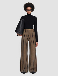 The Chevron Jacquard Trousers are a full-length, wide leg trouser, crafted from an ultrasoft merino wool. These comfortable trousers are finished with an elasticated waistband and feature a statement chevron pattern which is achieved using a jacquard technique. - 100% merino wool - Designed for a relaxed fit - Wide leg - Full-length - Pull-on style - Elasticated waistband - Product code: jf0086121012 SIZE ADVICE - Regular outer leg length 102cm - 105cm - Shorter outer leg length 98cm - 101cm - Model wears size M CARE & MATERIALS Discover the Care Guide, a guide to help you to care for your garments. - 100% Merino wool - Machine wash, wool/silk program wash, very gentle spin - Do not bleach - Do not tumble dry - Iron low temperature setting - Dry clean normal - Use a wool shampoo - Put in a laundry bag - Wash inside out with similar colours - Dry flat - Iron inside out