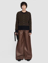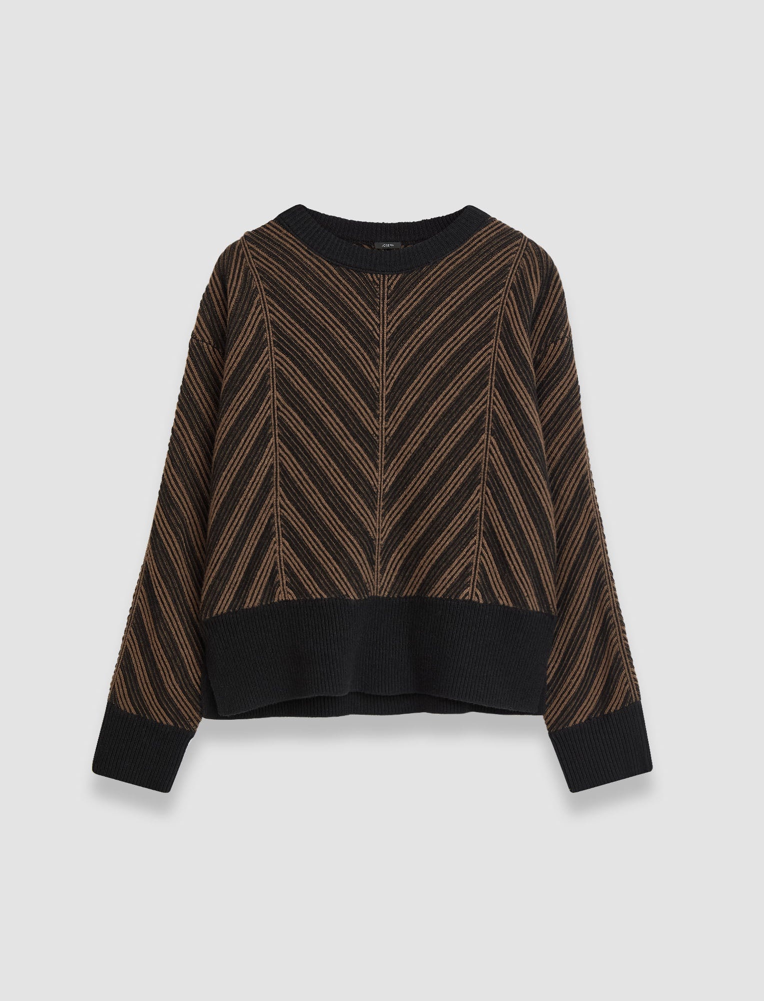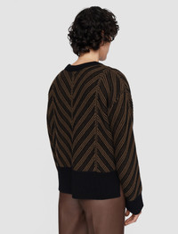 The Chevron Ribbed Round Neck Jumper is a regular fit jumper, crafted from 100% merino wool. Expertly knitted together in a diagonal ribbed pattern, which creates the overall chevron motif. This style has a soft, textured hand feel and features a wide hem, neckline and cuffs. - 100% merino wool - Designed for a regular fit - Dropped shoulders - Heavy weight knit - Product code: jf0086231911 SIZE ADVICE - Model wears size M CARE & MATERIALS Discover the Care Guide, a guide to help you to care for your garments. - 100% Merino wool - Machine wash, wool/silk program wash, very gentle spin - Do not bleach - Do not tumble dry - Iron low temperature setting - Dry clean normal - Use a wool shampoo - Put in a laundry bag - Wash inside out with similar colours - Dry flat - Iron inside out The Responsible Wool Standard is guaranteeing animal welfare, land management and social requirements on the entire supply chain, from wool farmer to Joseph. This standard is backed up by independent certification. Certified by Ecocert Greenlife, certification N° 272512 JOSEPH LIMITED.