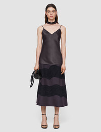 The Clea Camisole Silk Satin is a bias cut top, crafted from a luxurious, lustrous silk which is ultra smooth and rich in colour. This timeless piece offers a clean look; ideal for wearing on its own or as a layering piece. - 100% silk - Bias cut - V neck - Adjustable straps - Product code: jf0090870572 - Aurora Purple SIZE ADVICE - Model wears size FR 36/UK 8/EU 34/US 4/DE 34/IT 40/JP 7 CARE & MATERIALS Discover the Care Guide, a guide to help you to care for your garments. - 100% Silk - Do not wash - Do not bleach - Do not tumble dry - Iron low temperature setting - Dry clean