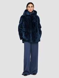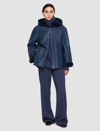 The Cosser Reversible Shearling Coat is a relaxed fit, hooded coat crafted from soft leather. This luxurious piece is reversible, featuring shearling one side and smooth leather on the other side. - We are recommending a size down - Designed for a relaxed fit - Reversible - Hooded style - Front pockets - Step hem - Product code: jf0089831403 - Harbour Blue SIZE ADVICE - Model wears size FR 36/UK 8/EU 34/US 4/DE 34/IT 40/JP 7 CARE & MATERIALS Discover the Care Guide, a guide to help you to care for your garments. - 100% Leather - Do not wash - Do not bleach - Do not tumble dry - Do not iron - Do not dry clean - Cleaning by a leather specialist only