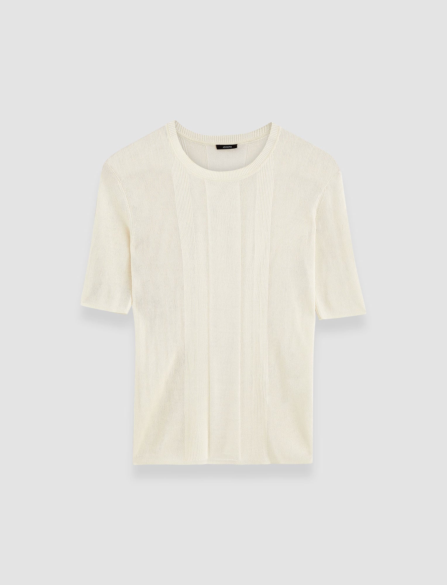 The Crisp Rayon Top is a regular fit style, crafted from a rayon paper blend yarn. This seasonal knit is lightweight and semi sheer with a breathable quality. It feels smooth and features a ribbed pattern. - Designed for a regular fit - Semi sheer - Lightweight knit - Product code: jf0090420045 - Ivory SIZE ADVICE - Model wears size S CARE & MATERIALS - 63% Viscose 37% Paper - Do not wash - Do not bleach - Do not tumble dry - Iron low temperature setting - Dry clean