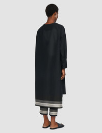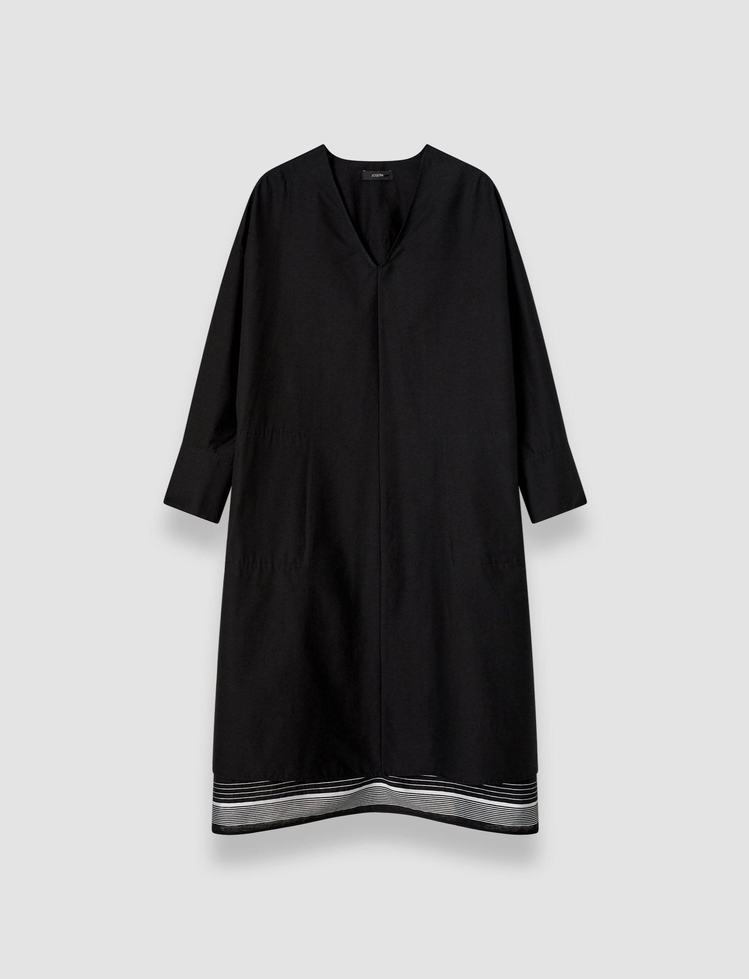 The Dalamo Cotton Blend Dress is a relaxed fit dress, crafted from a cotton and silk blend for softness and breathability. This effortless style features side pockets and a step hemline with contrasting jacquard stripe detailing. Model wears size FR 40/UK 12/EU 38/US 8/DE 38/IT 44/JP 11 Details - Designed for a relaxed fit - Mid-length - V neck - Side pockets - Step hemline - Jacquard stripe detailing - Product code: jp0017510010 Care & Materials - 87% Cotton, 11% Silk, 2% Viscose - Do not wash - Do not bleach - Do not tumble dry - Iron low temperature setting - Dry clean