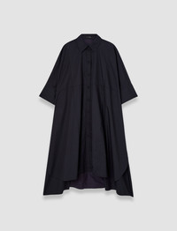 The Dania Poplin Cotton Dress is an oversized shirt dress, crafted from sturdy, breathable cotton. This style features dropped shoulders, wide sleeves and a step hemline; its exaggerated proportions deliver a sense of ease and effortless cool. - We are recommending two sizes down - 100% cotton - Designed for an oversized fit - Button-up style - Dropped shoulders - 3/4 length sleeves - Wide cuffs - Step hemline - Product code: jf0090790370 - Navy SIZE ADVICE - We are recommending two sizes down - Model wears size FR 36/UK 8/EU 34/US 4/DE 34/IT 40/JP 7 CARE & MATERIALS - 100% Cotton - Machine wash, delicate program wash, very gentle spin - Do not bleach - Do not tumble dry - Iron low temperature setting - Dry clean - Use a mild detergent - Hang to dry - Wash inside out with similar colours - Iron on reverse The GOTS certification of this product ensures that the cotton used is organic, cultivated without GMO, pesticides, insecticides and hazardous chemicals. Practices are socially and environmentally responsible all along the production chain. Organic Certified by Ecocert Greenlife 272512 JOSEPH LIMITED.