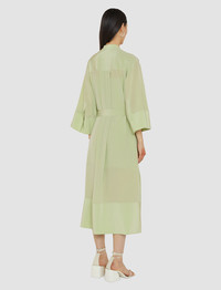 The Darius Crepe de Soie Silk Dress is a relaxed fit shirt dress, crafted from a lightweight silk crepe. This effortless, easy-wearing dress features statement wide sleeves and a step hemline. - We are recommending a size down - 100% silk - Designed for a relaxed fit - Button-up style - Removable belt - Side pockets - Side slits - Product code: jf0091511336 - Matcha Green SIZE ADVICE - We are recommending a size down - Regular length 124cm - 130cm - Shorter length 115cm - 120cm - Model wears size FR 36/UK 8/EU 34/US 4/DE 34/IT 40/JP 7 CARE & MATERIALS Discover the Care Guide, a guide to help you to care for your garments. - 100% Silk - Machine wash, wool/silk program wash, very gentle spin - Do not bleach - Do not tumble dry - Iron low temperature setting - Dry clean - Use a special wool/silk detergent - Wash inside out with similar colours - Put in a laundry bag - Iron inside out - Hang to dry