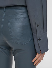 The Duke Leather Stretch Trousers are a cropped, slim fit trouser with a subtle flare leg. Crafted from supple leather that’s backed onto cotton jersey, making them very comfortable to wear. Model wears size FR 36/UK 8/EU 34/US 4/DE 34/IT 40/JP 7 Details - Designed for a slim fit - Mid-rise - Cropped length - Subtle flare - Product code: jf0094530211 Care & Materials - 100% Lambskin - Do not wash - Do not bleach - Do not iron - Do not tumble dry - Do not dry clean - Cleaning by a leather specialist only