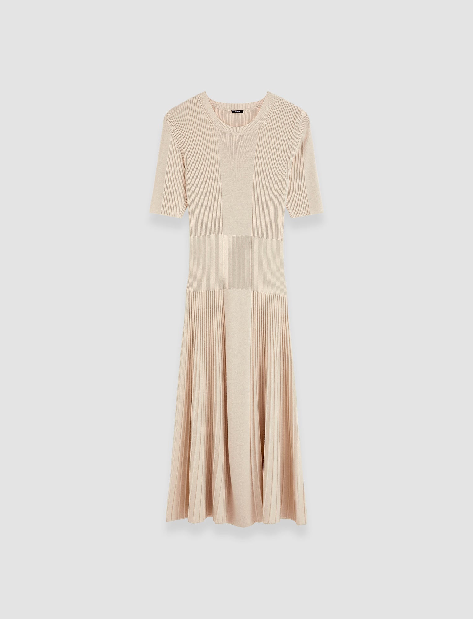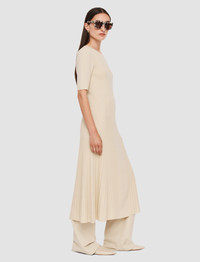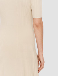The Merino Rib Dress is a regular fit to flare dress, crafted from a fine Italian merino wool which has a smooth, compact hand feel. This dress features a mix of ribbed textures which gives the style fluidity and stretch. - Regular fit to flare - Mid-length - Product code: jf0090071267 - Quail Beige SIZE ADVICE - Length 114cm - 119cm - Model wears size S CARE & MATERIALS Discover the Care Guide, a guide to help you to care for your garments. - 100% Merino wool - Machine wash, wool/silk program wash, very gentle spin - Do not bleach - Do not tumble dry - Iron low temperature setting - Dry clean - Use a wool shampoo - Put in a laundry bag - Wash inside out with similar colours - Dry flat - Iron inside out The Responsible Wool Standard is guaranteeing animal welfare, land management and social requirements on the entire supply chain, from wool farmer to Joseph. This standard is backed up by independent certification. Certified by Ecocert Greenlife, certification N° 272512 JOSEPH LIMITED.