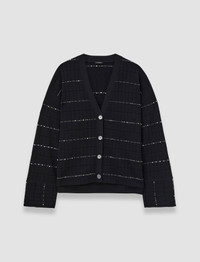 The Fragmented Stripes Cardigan is a relaxed fit cardigan, crafted from a viscose blend. An elegant addition to any look, this piece features a contrasting dotted, stripe pattern. Model wears size L Details - Designed for a relaxed fit - Product code: jf0093251906 Care & Materials - 80% Viscose 17% Elastane 2% Cotton 1% Polyester - Machine wash, hand wash cycle, wool/silk program, very gentle spin - Do not bleach - Do not tumble dry - Iron low temperature setting - Dry clean - Use a wool shampoo - Put in a laundry bag - Wash inside out with similar colours - Dry flat - Iron inside out