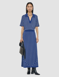 The Geometric Jacquard Skirt is an A-line, ankle-length design, crafted from a blend of viscose, silk and cotton. It delivers a fluid drape, subtle stretch and a smooth, jersey hand feel. Model wears size S Details - A-line - Mid-rise - Ankle length - Elasticated waistband - Product code: jf0092421411 Care & Materials - 63% Viscose 29% Silk 8% Cotton - Hand wash only - Do not bleach - Do not tumble dry - Iron low temperature setting - Dry clean - Use a wool shampoo - Put in a laundry bag - Wash inside out with similar colours - Dry flat - Iron inside out