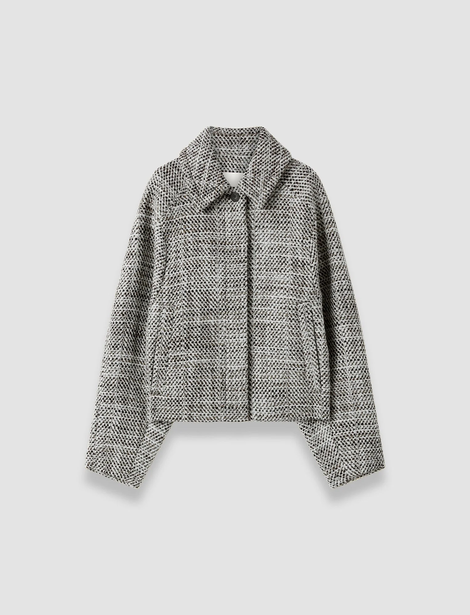 The Geroux Crosshatch Virgin Wool Coat is a relaxed fit, short coat. Crafted from virgin wool in an interlacing weave that adds texture, depth, and structure. Its saddle shoulder construction lends a cocooned silhouette, showcasing considered craftsmanship in every detail. Model wears size FR 38/UK 10/EU 36/US 6/DE 36/IT 42/JP 9 Details - Designed for a relaxed fit - Cocoon silhouette - Short cut - Button fasten with concealed placket - Welt side pockets - Lined - Product code: jf0095582241 Care & Materials - 97% Virgin Wool 3% Polyester - Do not wash - Do not tumble dry - Iron low temperature setting - Dry clean