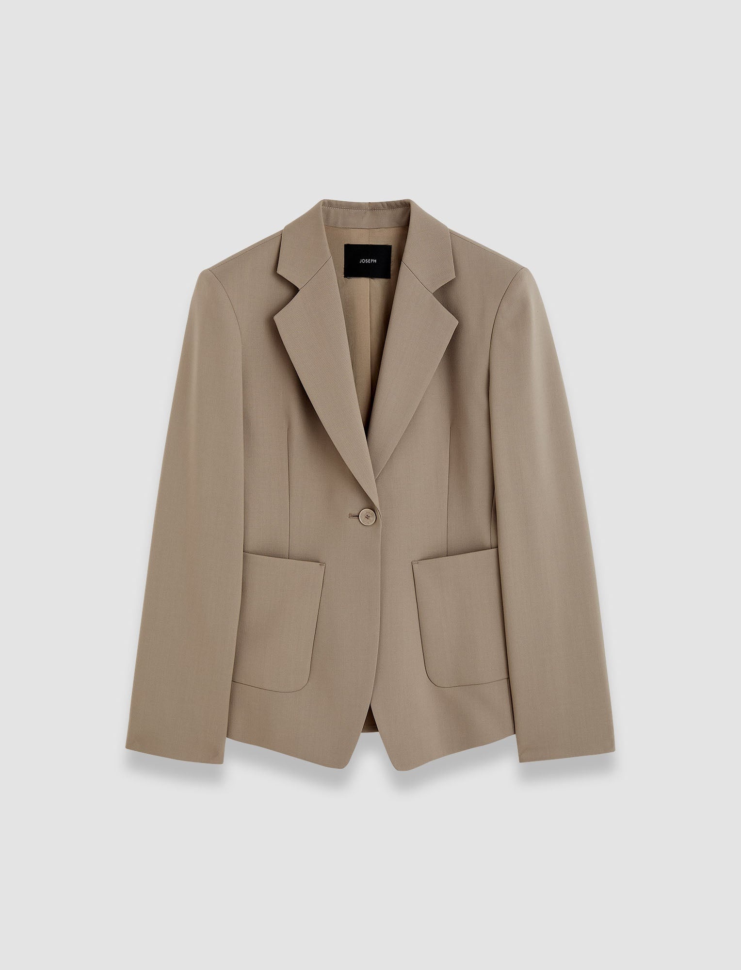 The Glenview Tailoring Wool Stretch Jacket is a slim fit, single-breasted jacket, crafted from JOSEPH's signature tailoring wool fabric. This jacket is lined and is finished with shoulder padding and darts at the waistline for a clean, fitted look. - Designed for a slim fit - Single-breasted - Darts at waistline - Front patch pockets - Product code: jp0017201251 - Escargot Grey SIZE ADVICE - Model wears size FR 36/UK 8/EU 34/US 4/DE 34/IT 40/JP 7 CARE & MATERIALS Discover the Care Guide, a guide to help you to care for your garments. - 98% Virgin wool 2% Elastane - Do not wash - Do not bleach - Do not tumble dry - Iron low temperature setting - Dry clean The Responsible Wool Standard is guaranteeing animal welfare, land management and social requirements on the entire supply chain, from wool farmer to Joseph. This standard is backed up by independent certification. Certified by Ecocert Greenlife, certification N° 272512 JOSEPH LIMITED.