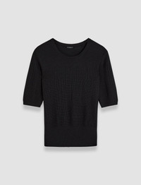 The Gradient Stitch Round Neck Top is a regular fit top, crafted from a luxurious blend of merino wool and silk. This soft, mid-weight knit top is elevated through a gradient stripe pattern, which is achieved using a chain stitch. - Designed for a regular fit - Knitted gradient pattern - Product code: jf0090290010 - Black SIZE ADVICE - Model wears size M CARE & MATERIALS Discover the Care Guide, a guide to help you to care for your garments. - 75% Merino wool 25% Silk - Machine wash, wool / silk program wash, very gentle spin - Do not bleach - Do not tumble dry - Iron low temperature setting - Dry clean - Use a wool shampoo - Wash inside out with similar colours - Dry flat - Iron inside out