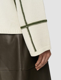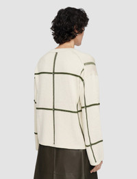 The Grid Cotton Silk Crew Neck Jumper is a relaxed fit jumper, crafted from a blend of cotton and silk. This piece features a textured grid pattern which is achieved using a ladder jacquard technique. It's the ideal weight for transitional dressing and has a smooth cotton hand feel. - Designed for a relaxed fit - Boxy cut - Dropped shoulders - Product code: jf0085561963 SIZE ADVICE - Model wears size M CARE & MATERIALS Discover the Care Guide, a guide to help you to care for your garments. - 85% Cotton 15% Silk - Machine wash, wool/silk program wash, very gentle spin - Do not bleach - Do not tumble dry - Iron low temperature setting - Dry clean normal - Use a wool shampoo - Put in a laundry bag - Wash inside out with similar colours - Dry flat - Iron inside out