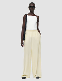 The Hulin Crepe de Soie Silk Trousers are a wide leg trouser, crafted from a lightweight silk crepe. These fluid trousers are finished with an elasticated waistband, delivering comfort and an easy-wearing, relaxed silhouette. Model wears size FR 36/UK 8/EU 34/US 4/DE 34/IT 40/JP 7 Details - 100% silk - Designed for a relaxed fit - Mid-rise - Wide leg - Side pockets - Elasticated waistband - Regular outer leg length 113cm - 116cm - Shorter outer leg length 102cm - 106cm - Product code: jf0093842270 Care & Materials - 100% Silk - Do not wash - Do not bleach - Do not tumble dry - Iron low temperature setting - Dry clean