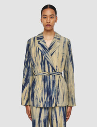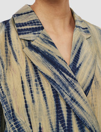 The Joubert Tie Dye Silk Jacket is a double-breasted jacket, crafted from luxurious habotai silk. This jacket is lightweight and fluid, it can be worn alone or as a light layer. A Japanese tie-dying technique has been used to create its unique pattern. - 100% silk - Designed for a regular fit - Double-breasted - Two button closure - Removeable belt - Crinkled texture - Lightweight - Due to the nature of tie-dye, each piece will vary in pattern - Product code: jf0091471287 - Desert Sand/Navy Multicolour SIZE ADVICE - Model wears size FR 36/UK 8/EU 34/US 4/DE 34/IT 40/JP 7 CARE & MATERIALS Discover the Care Guide, a guide to help you to care for your garments. - 100% Silk - Do not wash - Do not bleach - Do not tumble dry - Iron low temperature setting - Dry clean