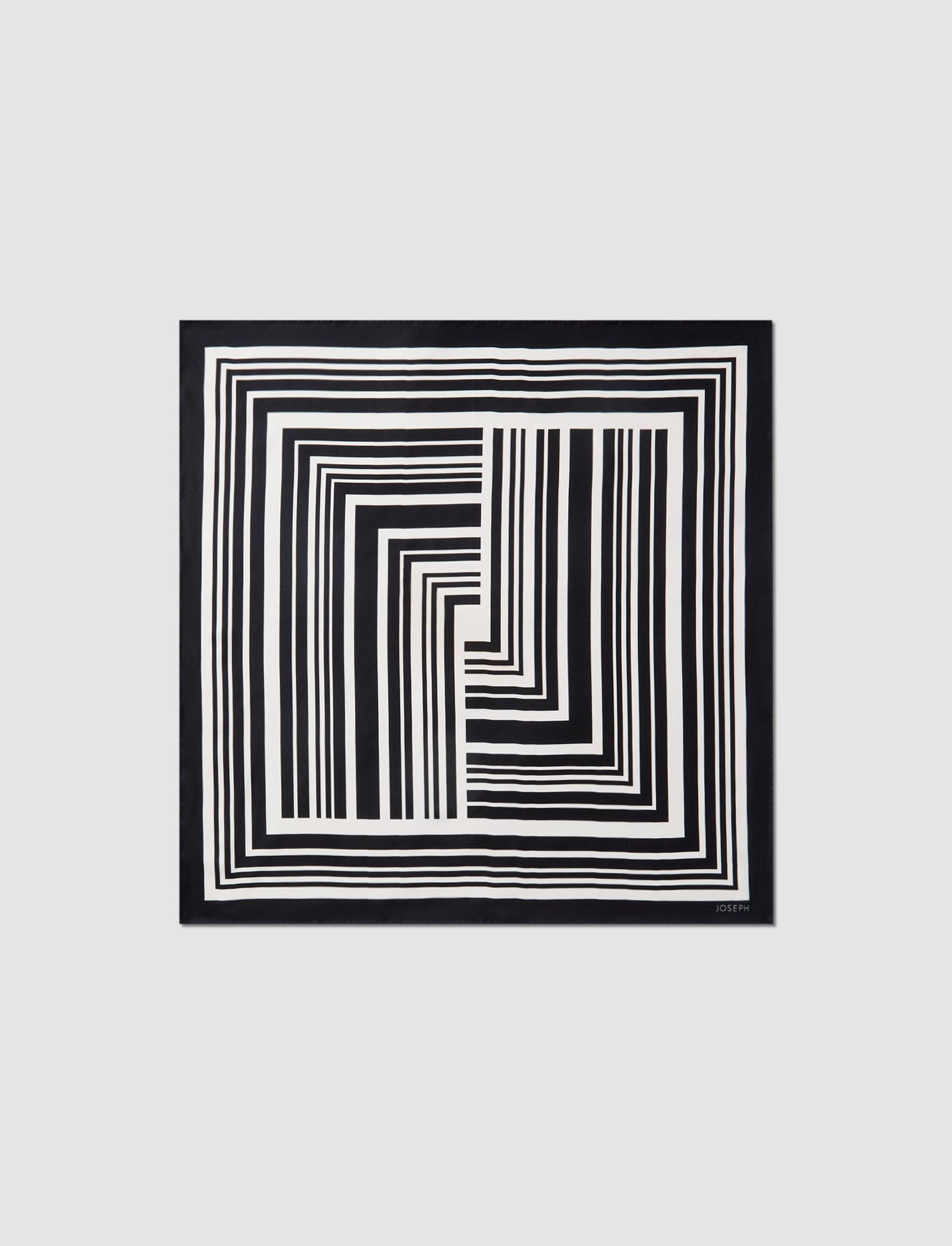 Crafted from silk with a lustrous finish, this versatile scarf features a striped motif in black and ivory. An elegant accessory designed to elevate everyday looks, sharpen classic tailoring, or simply deliver a pop of print. Details - 100% silk - 60cm x 60cm - Product code: jf0096280955 Care & Materials - 100% Silk - Hand wash cold - Use mild detergent - Do not soak or wring - Line dry in shade