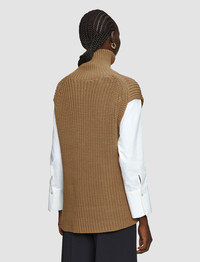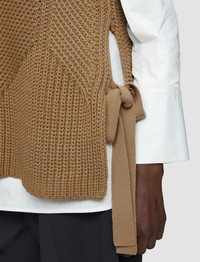 Designed to be worn together, the Knit Vest & Shirt is a two-piece set. A round neck cotton undershirt sits comfortably beneath a chunky knit, high neck vest. The vest is crafted from a cotton blend and features one side slit with a tie detail. - Vest and shirt set - Regular fit cotton undershirt - Relaxed, high neck vest - Side slit with tie - Both pieces can be worn separately - Product code: jf0088271222 SIZE ADVICE - Model wears size M CARE & MATERIALS - 63% Cotton 34% Polyamide 3% Wool - Machine wash, wool/silk program wash, very gentle spin - Do not bleach - Do not tumble dry - Iron low temperature setting - Dry clean mild - Use a wool shampoo - Wash inside out with similar colours