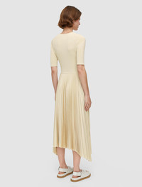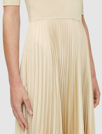 The Knit Weave Plisse Darno Dress is a fit to flare midi dress, crafted from a crepe yarn which has a smooth and silky hand feel. This mixed material dress has a compact, Milano knitted top half which is expertly joined to an a-symmetric, sunray pleated skirt. - Fit to flare - A-symmetic hem - Product code: jf0086911274 SIZE ADVICE - Regular length 111cm - 117cm - Shorter length 103cm - 109cm - Model wears French size 36 CARE & MATERIALS - 100% Polyester - Do not wash - Do not bleach - Do not tumble dry - Iron low temperature setting - Dry clean mild 100% GRS recycled polyester Certified by ECOCERT GREENLIFE Licence 272512 Products certified to the Global Recycled Standard (GRS) contain recycled polyester that has been (independently) verified at each stage of the supply chain, from the source to the final product. In addition, social, environmental, and chemical criteria related to processing are required.