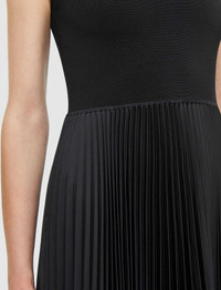 The Knit Weave Plissé Dera Dress is an A-line midi dress crafted from a crepe yarn which has a silky and compact hand feel. This style features a slim fit, knitted top half, which is attached to a fluid, sunray pleated skirt. - Slim fit to flare - Mid-length - Asymmetric hem - Regular length 111 - 117cm - Shorter length 103 - 108cm - Model wears French size 36, S - Product code: jf0080230010 SIZE ADVICE - Slim fit to flare - Mid-length - Asymmetric hem - Regular length 111 - 117cm - Shorter length 103 - 108cm - Model wears French size 36, S CARE & MATERIALS - 100% Polyester - Do not wash - Do not bleach - Do not tumble dry - Iron low temperature setting - Dry clean mild - Specialist care required