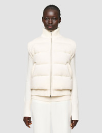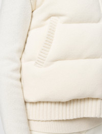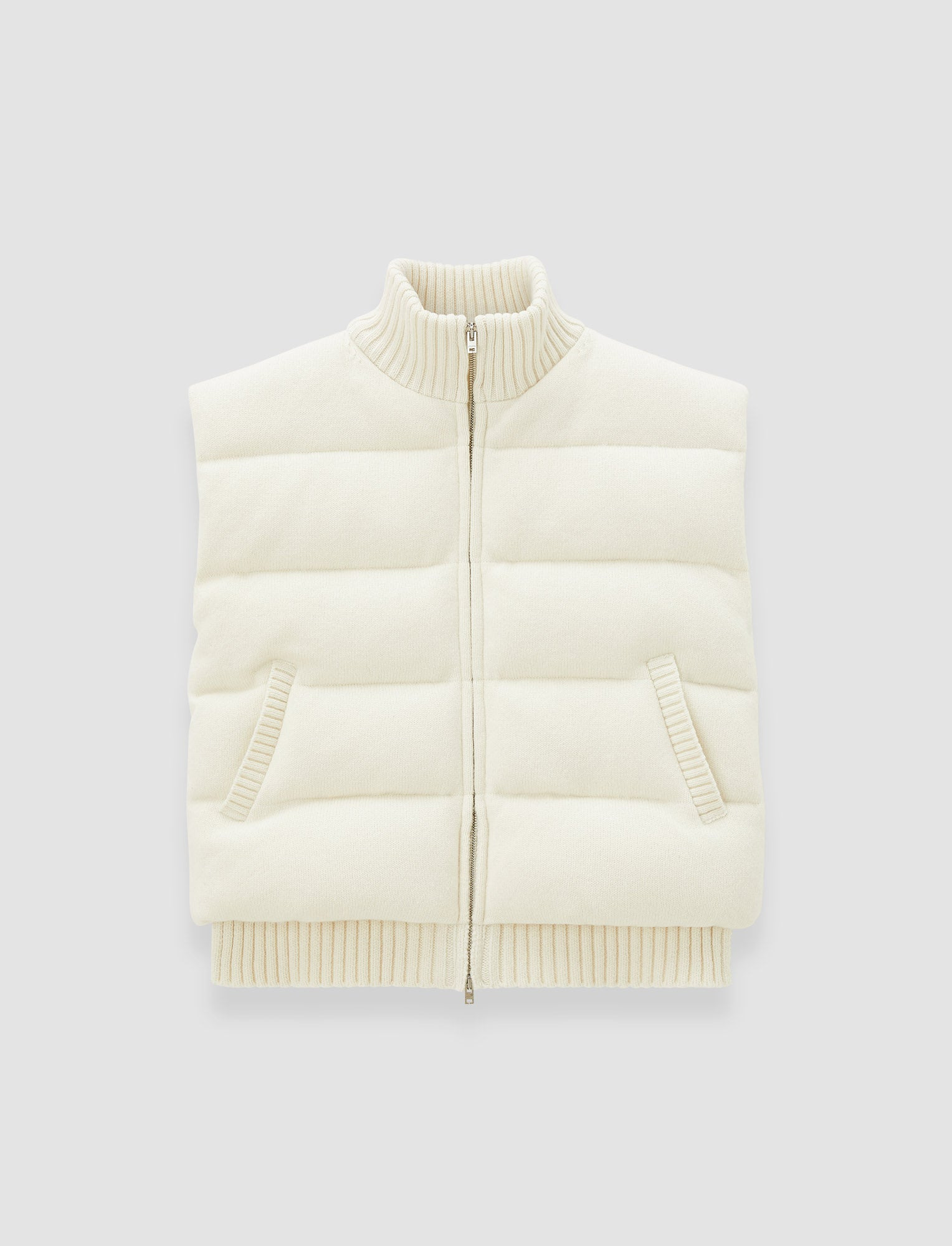 The Knitted Down Puffer Gilet is crafted from soft merino wool. This knitted style delivers maximum warmth with its down padding, high neck and double-ended zip for versatile styling. An ideal layering piece for the cooler seasons. Model wears size S Details - 100% merino wool - Padded duck down style - Ribbed high neck - Dropped shoulder - Double-ended zip - Side pockets - Product code: jf0093380045 Care & Materials - 100% Merino wool - Padding 90% duck down 10% duck feather - Do not wash - Do not bleach - Do not tumble dry - Iron low temperature setting - Dry clean