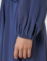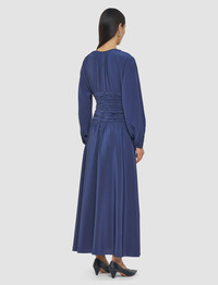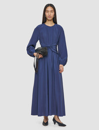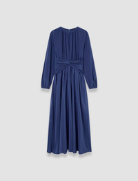 The Leila Crepe de Soie Knot Silk Dress is a full-length, fit to flare dress, crafted from JOSEPH’s signature luxurious silk crepe. This romantic style dress features a knotted centre that accentuates the waist and creates an elegant gathered detail. Its lightness allows for volume, drape and exceptional comfort. - 100% silk - Fit to flare - Full-length - Voluminous sleeves - Knotted waist detail - Invisible back zip - Product code: jf0092201403 - Harbour Blue SIZE ADVICE - Model wears size FR 36/UK 8/EU 34/US 4/DE 34/IT 40/JP 7 CARE & MATERIALS - 100% Silk - Do not wash - Do not bleach - Do not tumble dry - Iron low temperature setting - Dry clean