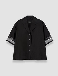 The Leopold Cotton Blend Shirt is a relaxed fit shirt, crafted from a cotton and silk blend for softness and breathability. This lightweight, boxy style features jacquard stripe detailing at the cuffs. Model wears size FR 38/UK 10/EU 36/US 6/DE 36/IT 42/JP 9 Details - We are recommending a size down - Designed for a relaxed fit - Elbow length sleeves - Jacquard stripe detailing - Product code: jp0017500010 Care & Materials - 87% Cotton, 11% Silk, 2% Viscose - Do not wash - Do not bleach - Do not tumble dry - Iron low temperature setting - Dry clean
