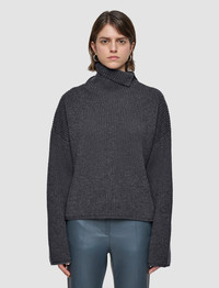 JOSEPH's signature merino wool cardigan stitch group has been reworked with cashmere and silk, creating the perfect mid-weight knit with a soft hand feel. This is a relaxed fit style featuring a slit high neck collar, dropped shoulders and a step hem. Model wears size M Details - Designed for a relaxed fit - Slit high neck - Dropped shoulders - Step hemline - Mid-weight knit - Product code: jf0092930211 Care & Materials - 80% Merino Wool 10% Cashmere 10% Silk - hand wash only - Do not bleach - Do not tumble dry - Iron low temperature setting - Dry clean - Use a wool shampoo - Wash inside out with similar colours - Dry flat - Iron inside out