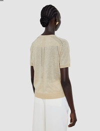 The Lille Lurex Knit Top is a slim fit top, crafted from a blend of viscose and metallic fibre. This festive piece is lightweight with a slight sheerness. It's elegantly finished with pointelle detailing. Model wears size S Details - Designed for a slim fit - Pointelle detailing - Ribbed edges - Semi-sheer - Product code: jf0095271710 Care & Materials - 70% Viscose 15% Polyester 15% Metallic Fibre - Machine wash, hand wash cycle, wool/silk program wash, very gentle spin - Do not bleach - Do not tumble dry - Iron low temperature setting - Dry clean - Use a wool shampoo - Put in laundry bag - Wash inisde out with similar colours - Dry flat - Iron inisde out