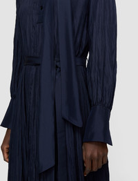 The Lisa Habotai Silk Dress is a relaxed fit dress, crafted from 100% habotai silk which is renowned for its lightness, sheen and silky hand feel. This fluid style has a dropped waistline with a crinkled skirt. It's a features a half-buttoned collar, a belt and neck ties for versatile styling. Model wears size FR 36/UK 8/EU 34/US 4/DE 34/IT 40/JP 7 Details - 100% silk - Designed for a relaxed fit - Neck ties - Tie belt - Crinkled texture - Product code: jf0091450370 - Navy Care & Materials - 100% Silk - Machine wash, wool/ silk program wash, very gentle spin - Do not bleach - Do not tumble dry - Do not iron - Do not dry clean - Dry twisted to restore the garment's crinkled texture