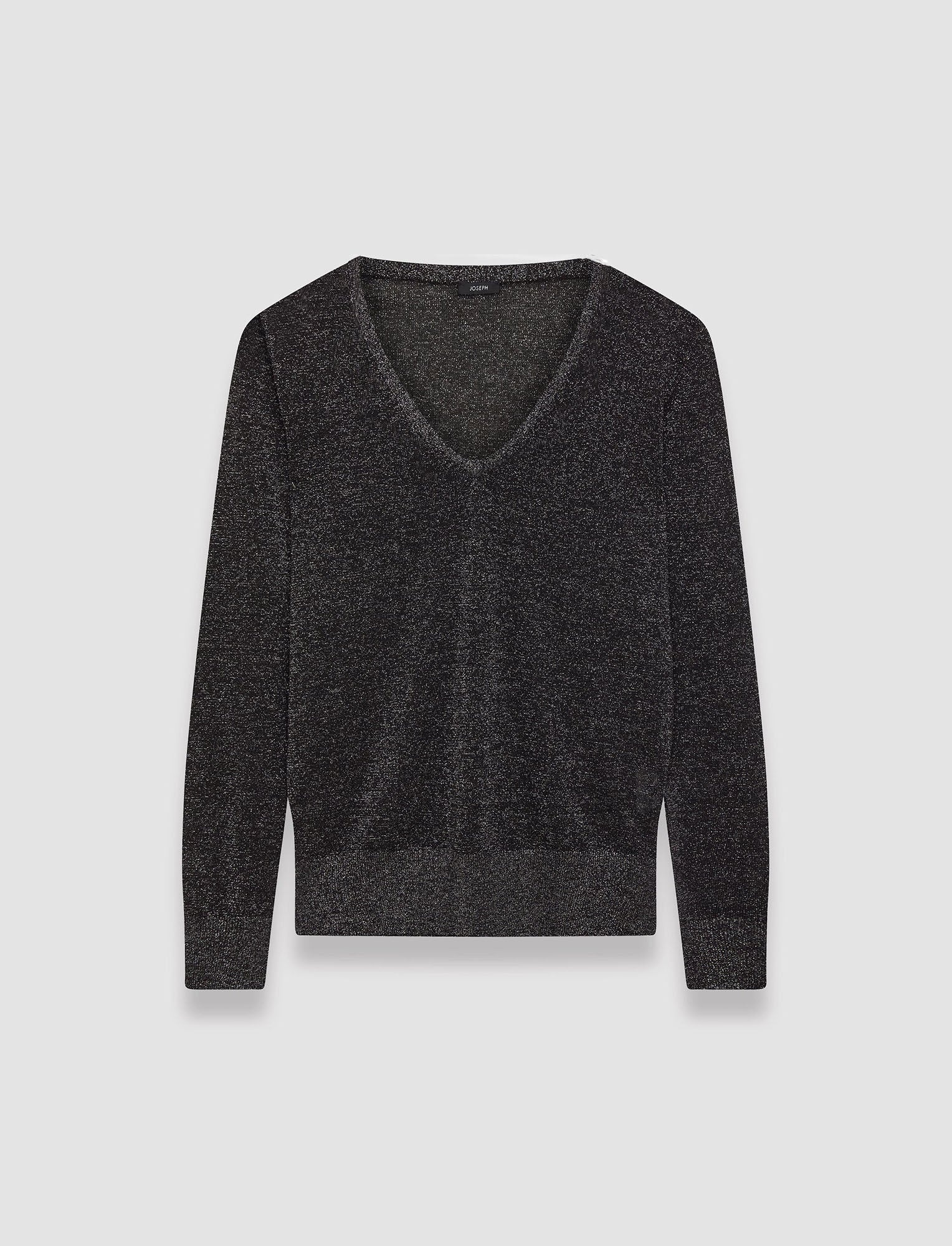 The Lurex V Neck Jumper is a lightweight, regular fit jumper, crafted from a blend of viscose and metallic fibre. This festive piece is semi sheer and is finished with ribbed stitching at the neckline, cuffs and hem. - Designed for a regular fit - Lightweight - Shimmery finish - Model wears size S - Product code: jf0082300010 SIZE ADVICE - Designed for a regular fit - Lightweight - Shimmery finish - Model wears size S CARE & MATERIALS - 68% Viscose 15% Polyester 15% Metallic Fibre 1% Polyamide 1% Elastane - Machine wash, wool/silk program wash, very gentle spin - Do not bleach - Do not tumble dry - Iron low temperature setting - Do not dry clean - Use a wool shampoo - Put in a laundry bag - Wash on inside out with similar colours - Dry flat - Iron inside out