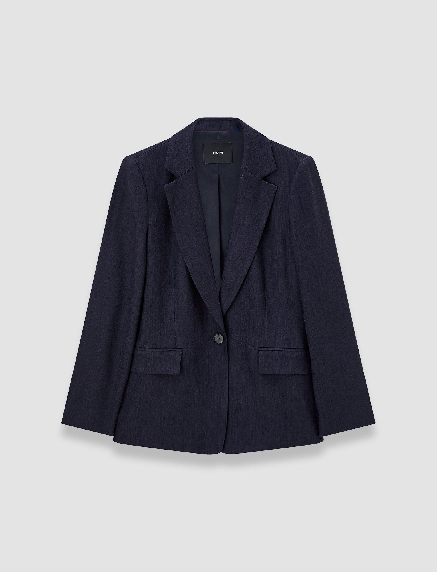 The Marty Linen Stretch Jacket is a slim fit, single-breasted jacket, crafted from a linen viscose blend. This style is a mid-weight linen, retaining the natural breathability and drape of linen. Ideal for warm weather suiting, this jackets delivers a sleek, fitted look. - Designed for a slim fit - Single-breasted - Darts at waistline - Front welt pockets - Product code: jp0017480370 - Navy SIZE ADVICE - Model wears size FR 36/UK 8/EU 34/US 4/DE 34/IT 40/JP 7 CARE & MATERIALS - 57% Linen 40% Viscose 3% Elastane - Do not wash - Do not bleach - Do not tumble dry - Iron low temperature setting - Dry clean
