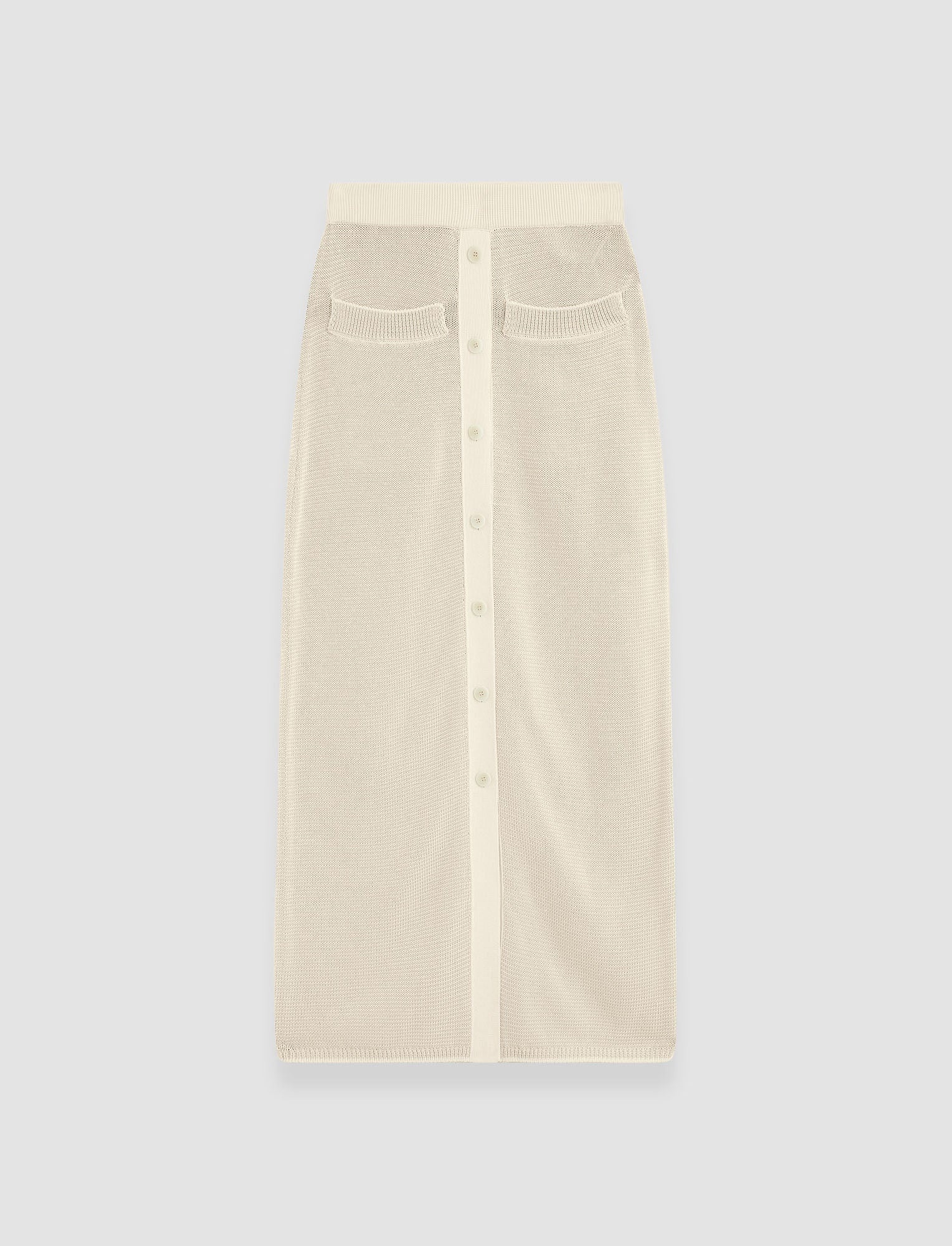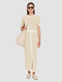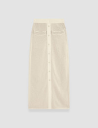The Micro Stripe Knit Skirt is a straight fit knitted skirt. Crafted from 100% Italian cotton, this is a breathable, mid-weight style. It features a central buttoned closure and is finished with a subtle stripe pattern. - 100% cotton - Designed for a straight fit - Mid-rise - Central buttoned closure - Elasticated waistband - Product code: jf0090191116 - Ivory/Quail SIZE ADVICE - Length 85cm - 87cm - Model wears size S CARE & MATERIALS - 100% Cotton - Wash at 40 ° - Do not bleach - Iron on medium temperature - Dry clean - Low temperature tumble dry The GOTS certification of this product ensures that the cotton used is organic, cultivated without GMO, pesticides, insecticides and hazardous chemicals. Practices are socially and environmentally responsible all along the production chain. Organic Certified by Ecocert Greenlife 272512 JOSEPH LIMITED.