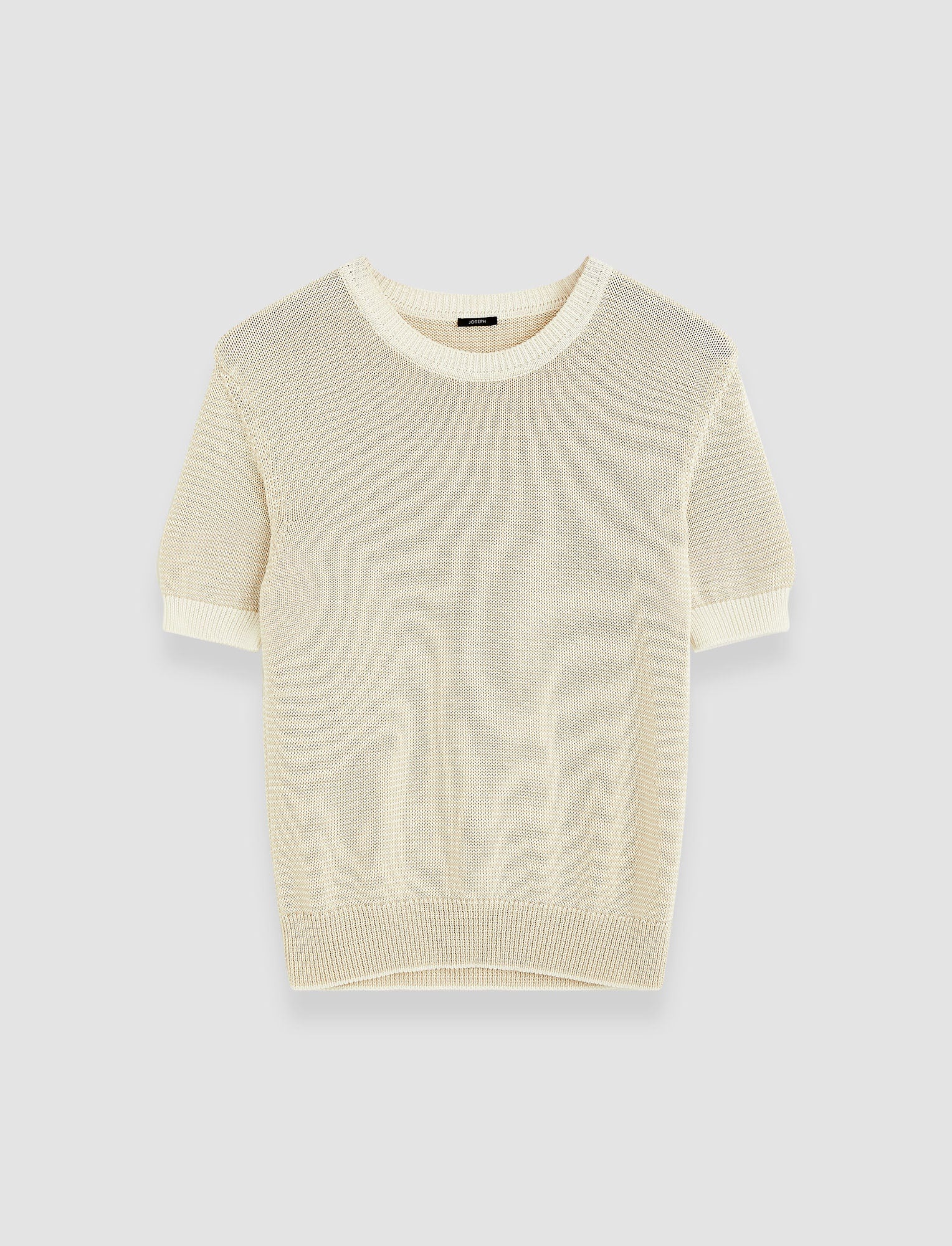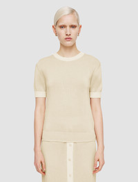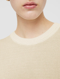 The Micro Stripe Knit Top is a regular fit, short sleeve knitted top, crafted from 100% Italian cotton. This is a breathable, mid-weight style, finished in a subtle stripe pattern. - 100% cotton - Designed for a regular fit - Product code: jf0090171116 - Ivory/Quail SIZE ADVICE - Model wears size S CARE & MATERIALS - 100% Cotton - Wash at 40 ° - Do not bleach - Iron on medium temperature - Dry clean - Low temperature tumble dry The GOTS certification of this product ensures that the cotton used is organic, cultivated without GMO, pesticides, insecticides and hazardous chemicals. Practices are socially and environmentally responsible all along the production chain. Organic Certified by Ecocert Greenlife 272512 JOSEPH LIMITED.