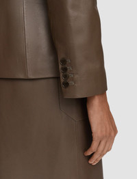 The Nappa Leather Glenview Jacket is a regular fit, single-breasted jacket, crafted from supple leather. This jacket is lined with shoulder padding and features darts at the waistline for a fitted look and finish. - Designed for a regular fit - Single-breasted - Darts at waistline - Front patch pockets - Four-button cuffs - Product code: jf0087741210 SIZE ADVICE - Model wears size FR 36/UK 8/EU 34/US 4/DE 34/IT 40/JP 7 CARE & MATERIALS Discover the Care Guide, a guide to help you to care for your garments. - 100% Leather - Do not wash - Do not bleach - Do not tumble dry - Do not iron - Do not dry clean - Cleaning by a leather specialist only