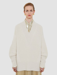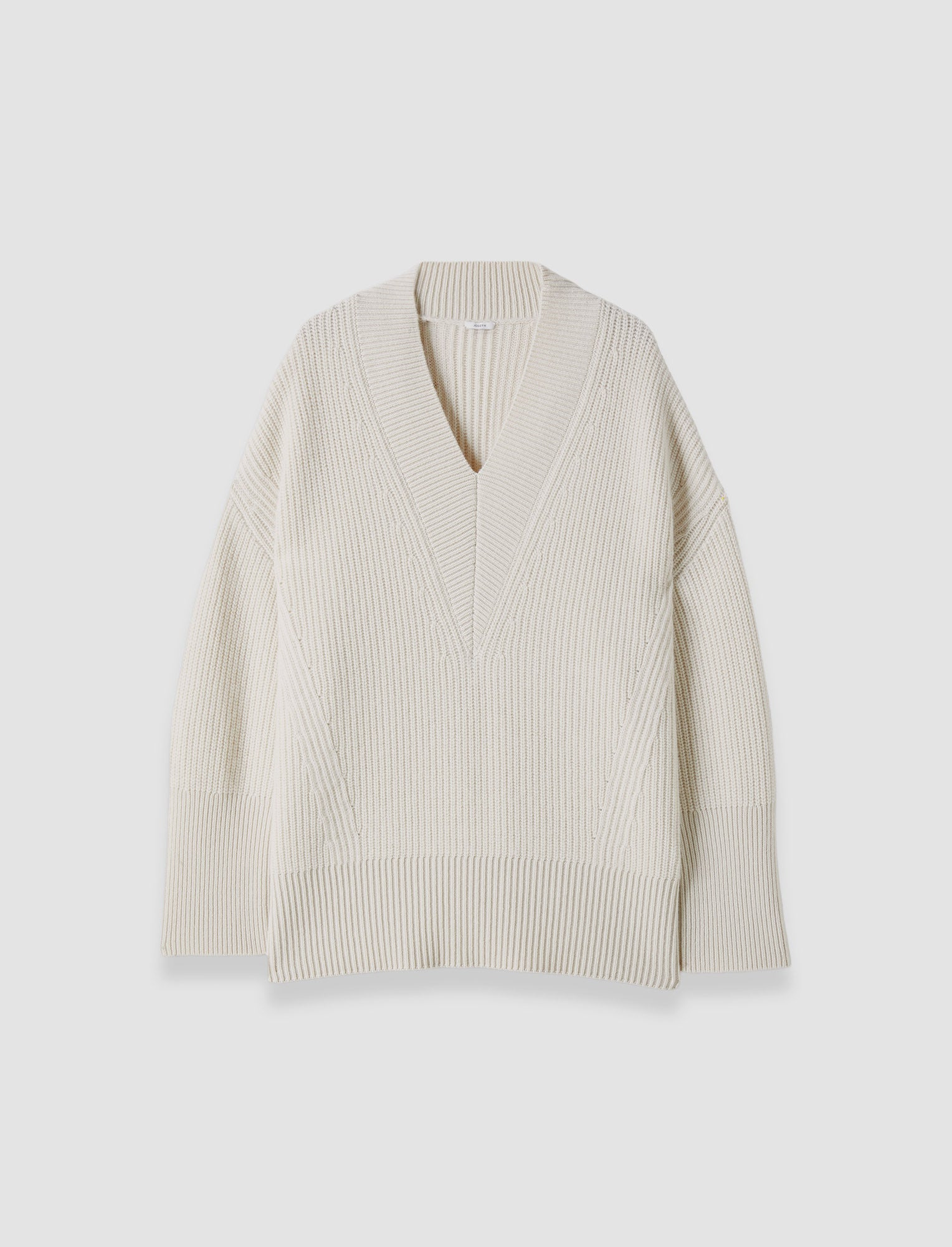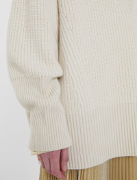 The Noel Fisherman Rib Cashmere Jumper is an oversized, V neck jumper, crafted from a blend of cashmere and wool. This cosy style is knitted in a half cardigan rib, a refined variation of the classic fisherman rib. It delivers a plush texture and maximum warmth. Model wears size L Details - Designed for an oversized fit - Deep V neck - Wide ribbed edges - Mid-weight knit - Product code: jf0095241119 Care & Materials - 50% Cashmere 25% Wool 25% Polyamide - Machine wash, cycle hand wash, very gentle spin - Do not bleach - Do not tumble dry - Iron low temperature setting - Dry clean - Use a wool shampoo - Put in laundry bag - Wash inisde out with similar colours - Dry flat - Iron inisde out - Store folded to maintain shape of garment