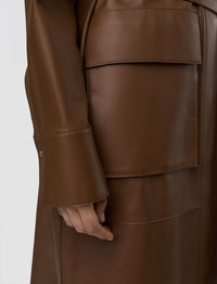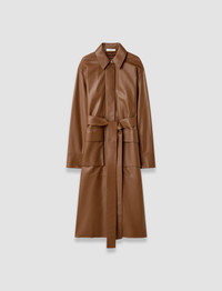 The Okabe Soft Nappa Leather Coat is a regular fit coat, crafted from supple nappa leather for exceptional softness and comfort. It features a sharp shirt-style collar and cuffs, blending classic tailoring with a modern edge. The patch pockets and belted waist further define the silhouette, enhancing its sleek, elongated shape. Its perfect for elevating both day and evening outfits. Model wears size FR 38/UK 10/EU 36/US 6/DE 36/IT 42/JP 9 Details - Designed for a regular fit - Mid-length - Button fasten with concealed placket - Shirt collar and cuffs - Patch pockets - Tie belt - Back vent - Unlined - Product code: jf0095860605 Care & Materials - 100% Lamb skin - Do not wash - Do not bleach - Do not iron - Do not tumble - Do not dry clean - Cleaning by a leather specialist only