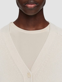 The Open Cashmere Cardigan is a relaxed fit cardigan, crafted from luxuriously soft Mongolian cashmere. This piece is loosely knitted for a comfort and lightness. It features knitted detailing at the shoulders and a wide ribbed hem and cuffs. - 100% cashmere - Designed for a relaxed fit - Raglan sleeves - V neck - Slit cuffs - Inserted front pockets - Lightweight knit - Product code: jf0085421274 SIZE ADVICE - Model wears size M CARE & MATERIALS Discover the Care Guide, a guide to help you to care for your garments. - 100% Cashmere - Machine wash, wool/silk program wash, very gentle spin - Do not bleach - Do not tumble dry - Iron low temperature setting - Dry clean normal - Use a wool shampoo - Put in a laundry bag - Wash inside out with similar colours - Dry flat - Iron inside out