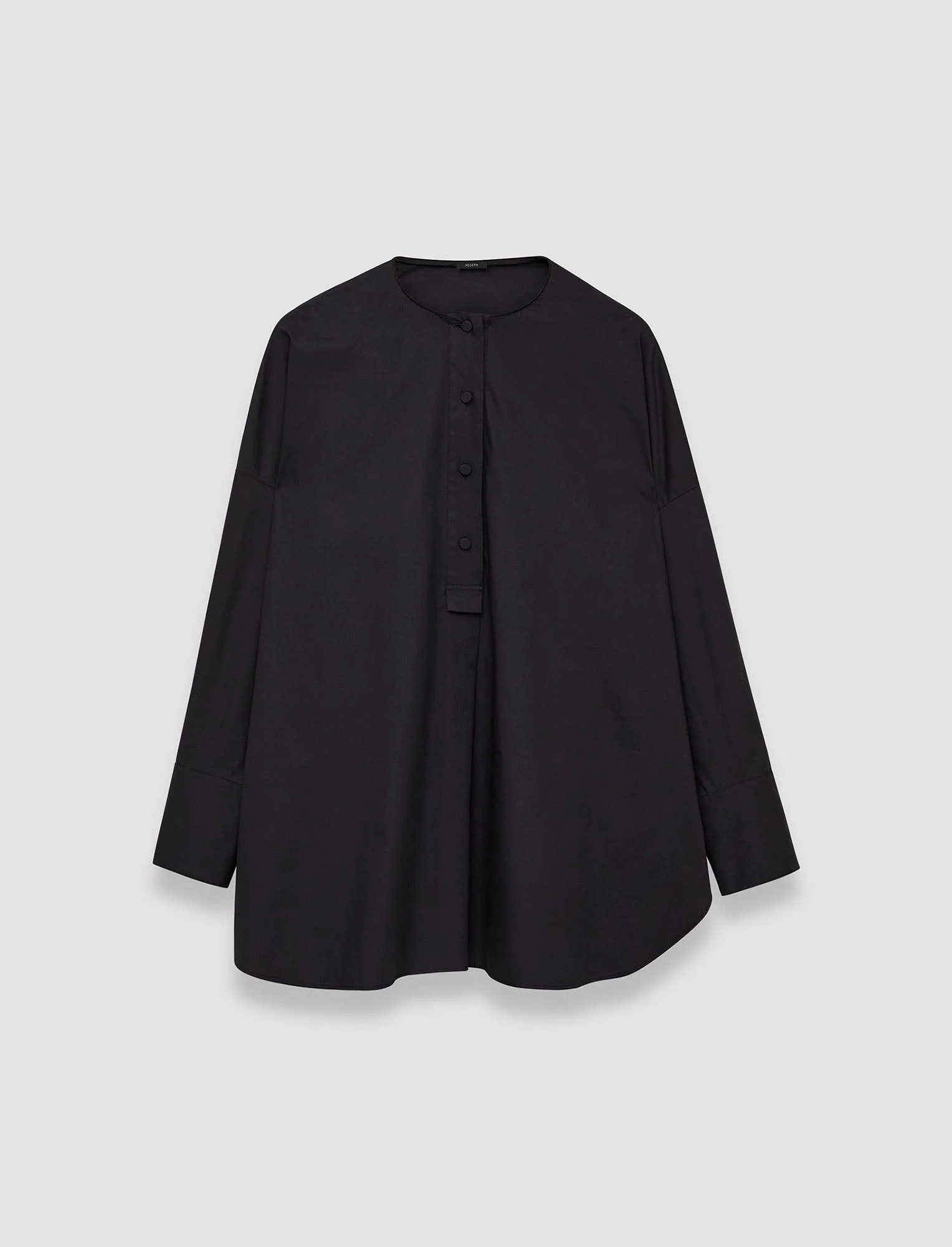 The Poplin Botha Blouse is a relaxed fit blouse, crafted from a breathable, sturdy cotton yarn. This piece features dropped shoulders and is finished with flat fabric covered buttons and piping detailing at the neckline. - 100% cotton - Designed for a relaxed fit - Dropped shoulders - Stepped hemline - Wide shirt cuffs - Product code: jf0084290010 SIZE ADVICE - Model wears French size 38 CARE & MATERIALS - 100% Cotton - Do not wash - Do not bleach - Do not tumble dry - Iron low temperature setting - Dry clean very light with restriction The GOTS certification of this product ensures that the cotton used is organic, cultivated without GMO, pesticides, insecticides and hazardous chemicals. Practices are socially and environmentally responsible all along the production chain. Organic Certified by Ecocert Greenlife 272512 JOSEPH LIMITED.