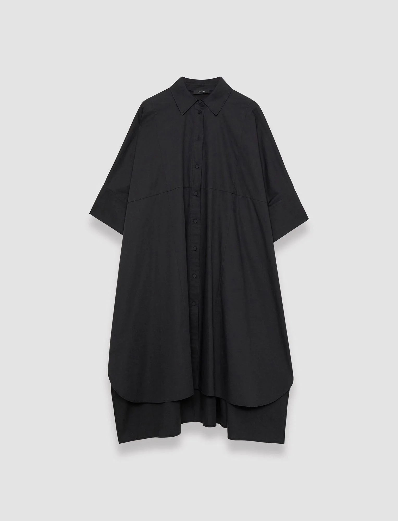 The Poplin Dania Dress is a oversized shirt dress, crafted from a sturdy cotton yarn. This breathable piece features dropped shoulders, 3/4 length sleeves with wide cuffs and fabric covered buttons. - 100% cotton - Designed for a relaxed, oversized fit - Button-up style - Dropped shoulders - 3/4 length sleeves - Wide cuffs - Stepped hemline - We are recommending a size down - Product code: jf0084280010 SIZE ADVICE - We are recommending a size down - Length 114cm - 120cm - Model wears French size 38 CARE & MATERIALS - 100% Cotton - Do not wash - Do not bleach - Do not tumble dry - Iron low temperature setting - Dry clean very light with restriction The GOTS certification of this product ensures that the cotton used is organic, cultivated without GMO, pesticides, insecticides and hazardous chemicals. Practices are socially and environmentally responsible all along the production chain. Organic Certified by Ecocert Greenlife 272512 JOSEPH LIMITED.