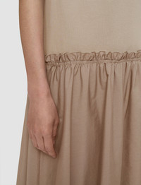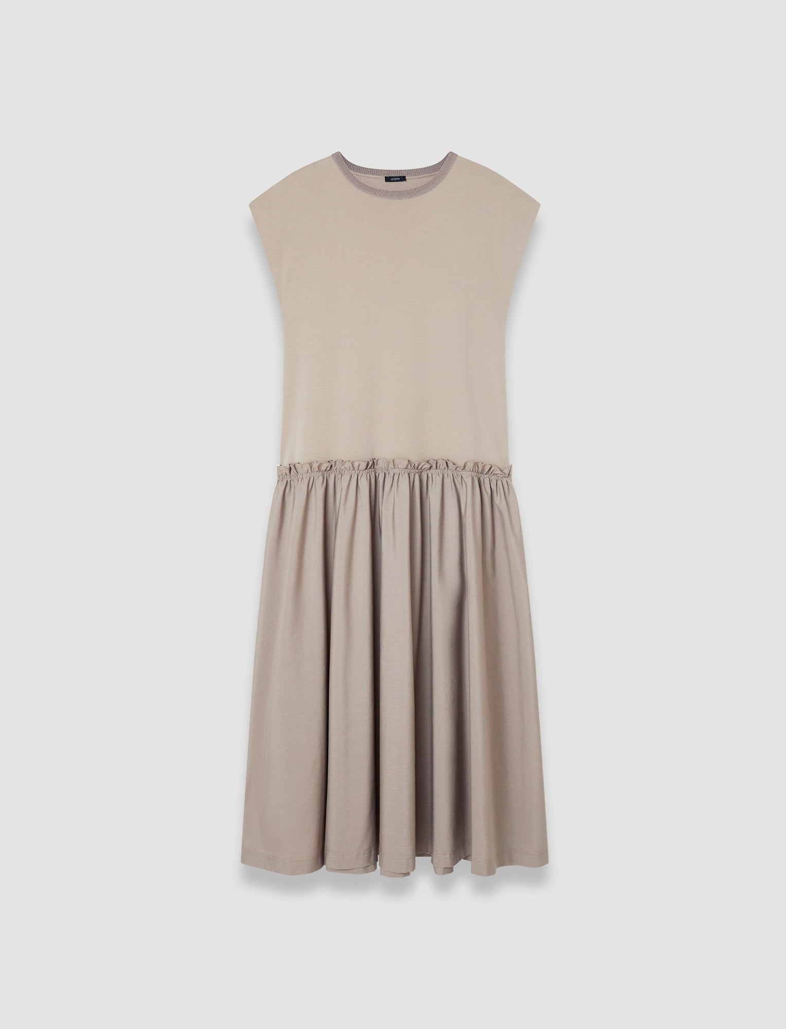The Poplin Jersey Dress is a relaxed fit, A-line dress, crafted from 100% cotton. The easy-wearing style is comprised of a jersey top with cap sleeves and a voluminous skirt in contrasting poplin. - Designed for a relaxed fit - A-line - Cap sleeves - Voluminous skirt - Product code: jf0092131251 - Escargot Grey SIZE ADVICE - Model wears size FR 38/UK 10/EU 36/US 6/DE 36/IT 42/JP 9 CARE & MATERIALS - 100% Cotton - Machine wash, delicate program wash, very gentle spin - Do not bleach - Do not tumble dry - Iron low temperature setting - Dry clean - Use a mild detergent - Hang to dry - Wash inside out with similar colours - Iron on reverse