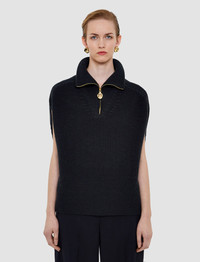 The Raffet Fisherman Rib Cashmere Vest is a relaxed fit, high neck vest, crafted from a blend of cashmere and wool. This cosy style is knitted in a half cardigan rib, a refined variation of the classic fisherman rib. It delivers a plush texture and maximum warmth. Model wears size M Details - Designed for a relaxed fit - High neck - Dropped shoulders - Bean zipper - Mid-weight knit - Product code: jf0095230010 Care & Materials - 50% Cashmere 25% Wool 25% Polyamide - Machine wash, cycle hand wash, very gentle spin - Do not bleach - Do not tumble dry - Iron low temperature setting - Dry clean - Use a wool shampoo - Put in laundry bag - Wash inisde out with similar colours - Dry flat - Iron inisde out - Store folded to maintain shape of garment