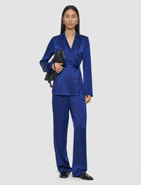 The Sahel Silk Satin Trousers are a high-rise, straight leg trouser, crafted from a luxurious, lustrous silk which is ultra smooth and rich in colour. These trousers feature a flat front which offers a clean, elegant look. Model wears size FR 36/UK 8/EU 34/US 4/DE 34/IT 40/JP 7 Details - Straight leg - High-rise - Full-length - Side pockets - Pull-on style - Elasticated waistband at the back - Regular outer leg length 103cm - 109cm - Shorter outer leg length 98cm - 102cm - Product code: jf0093811410 Care & Materials - 100% Silk - Machine wash, cycle hand wash, very gentle spin - Do not bleach - Do not tumble dry - Iron low temperature setting - Dry clean - Use a mild detergent - Put in a laundry bag - Hang to dry - Wash inside out with similar colours - Iron inside out