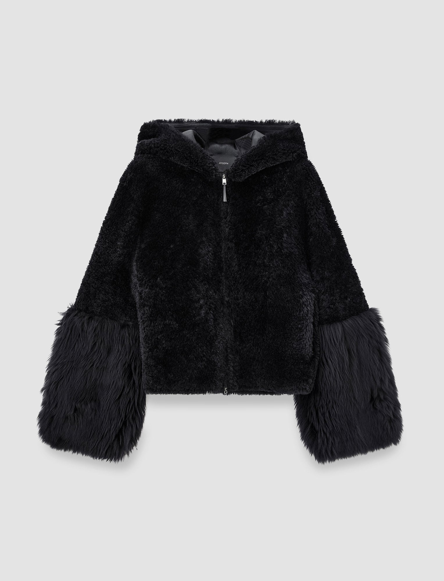 The Sarah Shearling Jacket is a relaxed fit jacket, crafted from 100% shearling. Offering a rich, tactile experience, this ultra-luxurious jacket expertly blends two shearling textures: short-curly and a long fur variety. It's short, hooded silhouette delivers elegance and ease, leaving room for layering over your favourite knitwear. Model wears size FR 38/UK 10/EU 36/US 6/DE 36/IT 42/JP 9 Details - Designed for a relaxed fit - Double-ended zip - Hood - Side pockets - Leather inside - Statement long fur cuffs - Product code: jf0094680261 Care & Materials - 100% Sheepskin - Do not wash - Do not bleach - Do not iron - Do not tumble dry - Do not dry clean - Cleaning by a leather specialist only