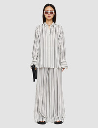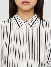 The Silk Animation Bold Blouse is a relaxed fit blouse, crafted from a silk crepe which has a smooth, crisp hand feel. This blouse is lightweight and fluid. It features a stripe pattern which has been achieved through a combination of woven and dying techniques, which gives the piece a subtle texture. - 100% silk - Designed for a relaxed fit - Button-up style - Stepped hemline - Side slits - Wide cuffs - Product code: jf0081081112 SIZE ADVICE - Model wears French size 36 CARE & MATERIALS - 100% Silk - Do not wash - Do not bleach - Do not tumble dry - Iron low temperature setting - Dry clean mild