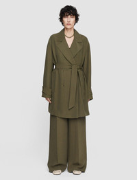 The Silk Crepe Charah Jacket is a relaxed fit, double-breasted jacket, crafted from a blend of silk and viscose. This style is lightweight with a smooth hand feel. It features a wide collar and wide tie belt, offering trench coat inspired detailing. - Designed for a relaxed fit - Double-breasted - Wide collar and lapels - Removable belt - Side pockets - Buttoned cuff straps - Unlined - Delicate fabric, handle with care - Product code: jf0086761203 SIZE ADVICE - Model wears French size 40 CARE & MATERIALS Discover the Care Guide, a guide to help you to care for your garments. - 66% Silk 34% Viscose - Do not wash - Do not bleach - Do not tumble dry - Iron low temperature setting - Dry clean very light with restriction