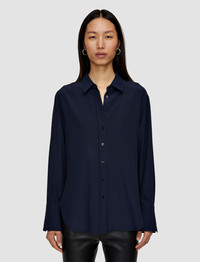 Part of the permanent Foundations Collection, the Silk Crepe de Chine Joe Blouse is a relaxed fit blouse, crafted from a lightweight silk crepe which has a smooth, crisp hand feel. This classic, button-up style is finished with shirt cuffs and a curved, step hemline. - 100% silk - Designed for a relaxed fit - Button-up style - Curved, step hemline - Wide shirt cuffs - Product code: jf0084000370 SIZE ADVICE - Model wears French size 36 CARE & MATERIALS Discover the Care Guide, a guide to help you to care for your garments. - 100% Silk - Machine wash, wool/silk program wash, very gentle spin - Do not bleach - Do not tumble dry - Iron low temperature setting - Dry clean very light with restriction - Use a special wool/silk detergent - Wash inside out with similar colours - Put in a laundry bag - Iron inside out - Hang to dry