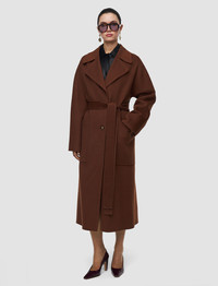 The Spencer Double Face Cashmere Coat is a single-breasted, relaxed fit coat, crafted from a luxurious blend of wool and cashmere. Designed with a wide collar, seamless shoulders, and sculpted sleeves for effortless structure and ease. Model wears size FR 40/UK 12/EU 38/US 8/DE 38/IT 44/JP 11 Details - Designed for a relaxed fit - Single-breasted - Long length - Wide collar with pick-stitching - Shaped sleeves - Removable belt - Front patch pockets - High back vent - Product code: jf0095920605 Care & Materials - 80% Wool 20% Cashmere - Do not wash - Do not bleach - Do not tumble dry - Iron low temperature setting - Dry clean