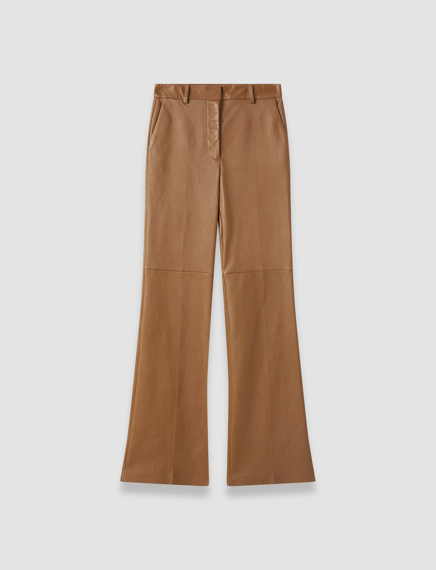 The Tafira Leather Stretch Trousers are a full-length, fit-and-flare silhouette, crafted from supple leather bonded to cotton jersey for enhanced comfort. A JOSEPH signature style, this modern tailoring piece delivers a clean-cut, elongated silhouette. Model wears size FR 36/UK 8/EU 34/US 4/DE 34/IT 40/JP 7 Details - Fit to flare - Mid-rise - Full-length - Side pockets - Exceptional comfort and stretch - Product code: jf0095870605 Care & Materials - 100% Lamb skin - Do not wash - Do not bleach - Do not tumble dry - Do not iron - Do not dry clean - Cleaning by a Leather Specialist Only