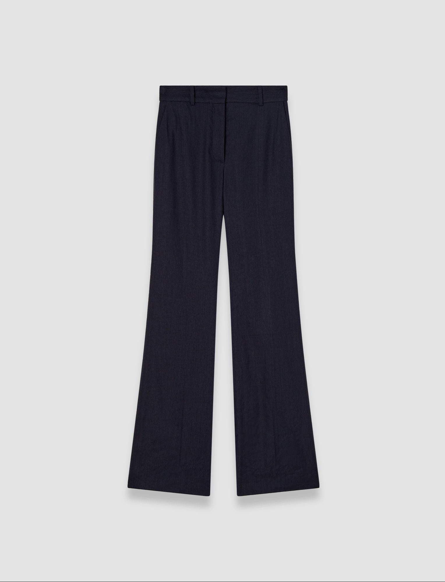 The Tafira Linen Stretch Trousers are a fit to flare trouser, crafted from a linen viscose blend. These trousers are a mid-weight linen with stretch, while retaining the natural breathability and drape of linen. Ideal for warm weather suiting, these trousers deliver optimum comfort and a flattering silhouette. - Fit to flare - Mid-rise - Full-length - Side pockets - Product code: jp0017410370 - Navy SIZE ADVICE - Regular outer leg length 113cm - 116cm - Shorter outer leg length 102cm - 105cm - Model wears size FR 36/UK 8/EU 34/US 4/DE 34/IT 40/JP 7 CARE & MATERIALS - 57% Linen 40% Viscose 3% Elastane - Do not wash - Do not bleach - Do not tumble dry - Iron low temperature setting - Dry clean