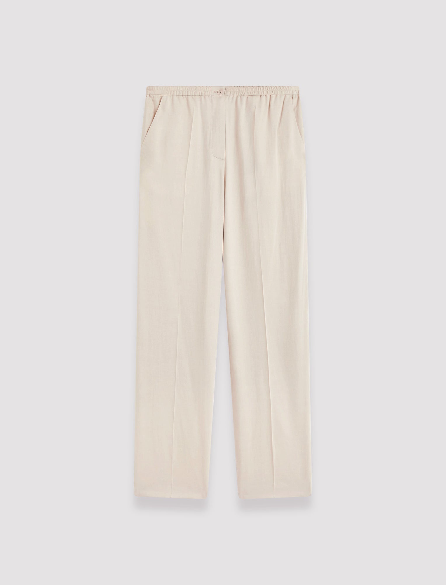 The Tahiti Soft Viscose Trousers are a straight leg trouser, crafted from a blend of viscose and lightweight wool. These trousers are a full-length style, finished with an elasticated waistband and central pressed creases for smart, effortless look. - Straight leg - Mid-rise - Full-length - Side pockets - Elasticated waistband - Product code: jp0017311267 - Quail Beige SIZE ADVICE - Regular outer leg length 113cm - 116cm - Shorter outer leg length 102cm - 105cm - Model wears size FR 36/UK 8/EU 34/US 4/DE 34/IT 40/JP 7 CARE & MATERIALS - 84% Viscose 16% Wool - Do not wash - Do not bleach - Do not tumble dry - Iron low temperature setting - Dry clean